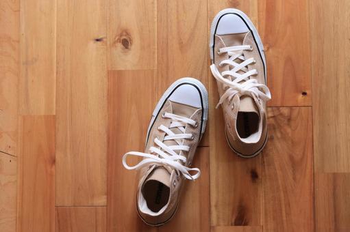 - 靴ひもと中敷きを外す